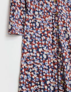 Adorned with eye-catching prints, this jersey cotton-blend shirt dress by White Stuff will make a fashion-forward impact. Cut in a regular fit, it drops to a midi length and is finished with a sharp collared neck and three-quarter sleeves. A classic button-fastening finish the piece.