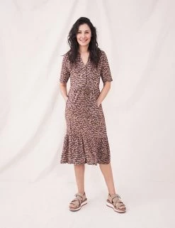 With its flowing cotton-modal fabric and quirky print of dandelion seeds, this White Stuff tea dress brings extra flair to sunny days out. It’s cut in an easy fit, with casual short sleeves and a feminine v-neckline. At the bodice, button fastenings give subtle detail. A deep tiered frill at the midi-length hemline adds fluttery movement, and pockets at the hips keep your essentials handy. Made with organic cotton.