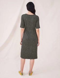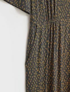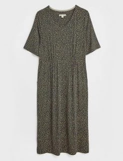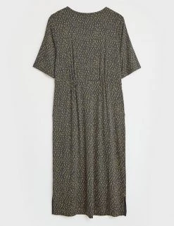 Smart-casual dressing is a breeze with this printed jersey dress by White Stuff. The shift style is cut to a regular fit which falls to the knee. Gentle gathering at the waist adds subtle shaping. A v-neckline, handy side slip pockets, and short sleeves complete the design. Made with sustainably sourced viscose.