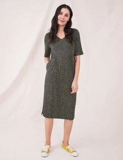 Smart-casual dressing is a breeze with this printed jersey dress by White Stuff. The shift style is cut to a regular fit which falls to the knee. Gentle gathering at the waist adds subtle shaping. A v-neckline, handy side slip pockets, and short sleeves complete the design. Made with sustainably sourced viscose.