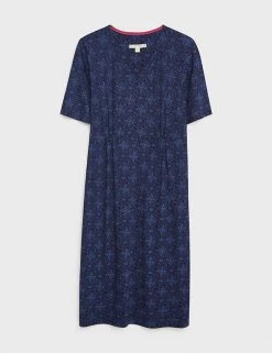 Create a stylish daytime look with this printed dress from White Stuff. The classic shift design is cut to a regular fit for a flattering silhouette. The hem sits at knee length and the dress has short sleeves and a crew neck for an elegant feel. Side pockets add a practical touch. Made with sustainably sourced viscose.