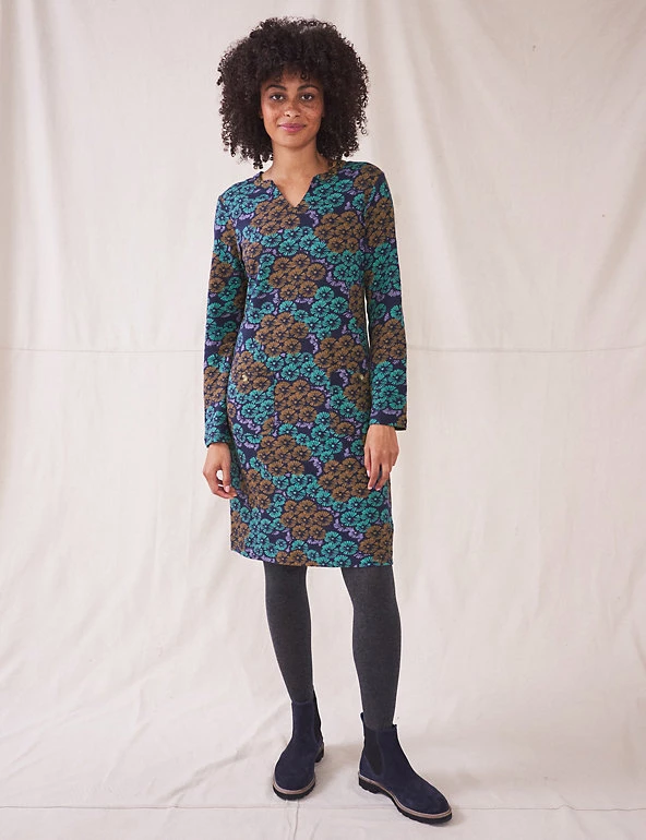 Update wintry outfits with this long-sleeved slip dress from White Stuff. It’s designed in a comfy regular fit with a flattering knee length and an elegant open v-neckline. The pure cotton fabric makes it soft and breathable, while the colourful print gives it a statement look. This versatile piece is finished with two buttoned pockets at the front.