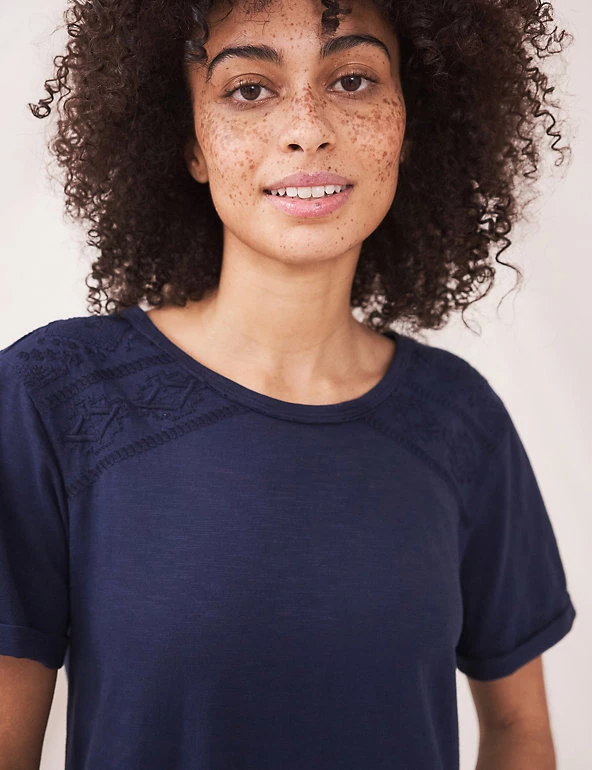 Off-duty style is easy with this pure-cotton dress from White Stuff. The t-shirt design is cut to an easy regular fit and sits at a flattering midi length. Short sleeves and a round neck add to the laid-back look. It’s detailed with intricate embroidery on the shoulders for a premium finish.