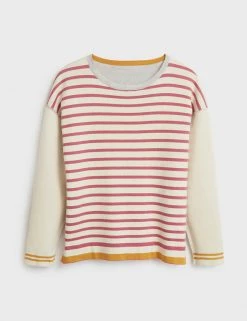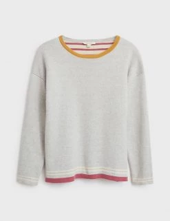 Have fun switching between two different looks with this reversible organic cotton-rich jumper from White Stuff. It’s designed in a comfy regular fit with an elegant slash neck. One side features stripes on the body and plain arms, the other has a colour block design. Both sides are finished with contrast trims. This cosy piece is made with a touch of cashmere for a luxurious feel and has ribbed cuffs to keep warmth in. Made with organic cotton.