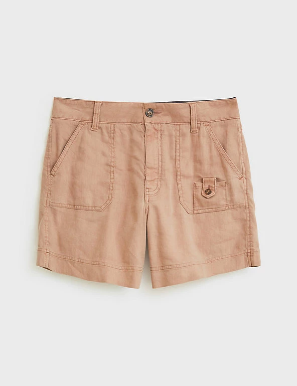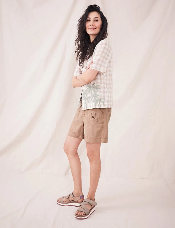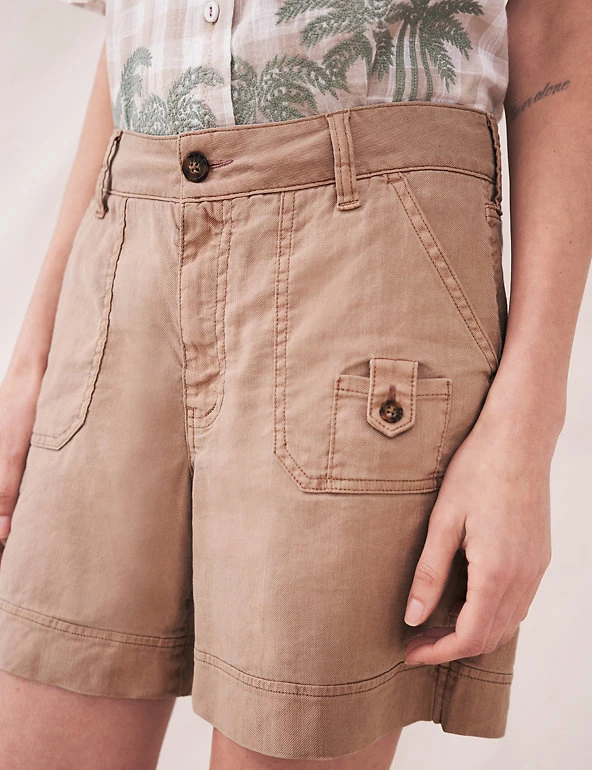 Bring a laid-back utility feel to your summer wardrobe, with these linen-blend shorts from White Stuff. They’re made in an easy mid-rise shape, with a neat button and zip fastening. Patch pockets and button-up tabs give extra detail, along with traditional top-stitched seams.