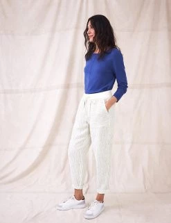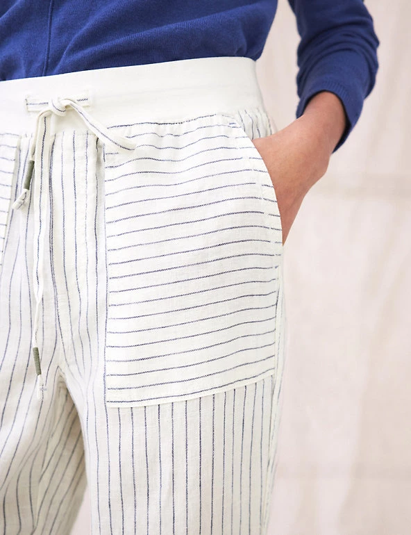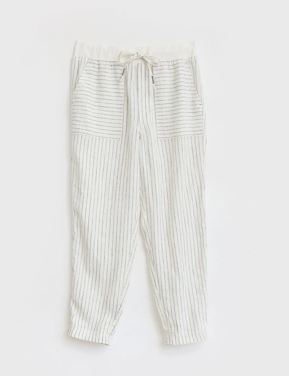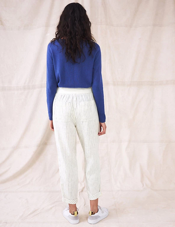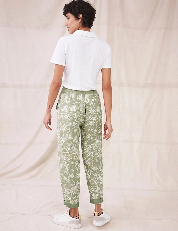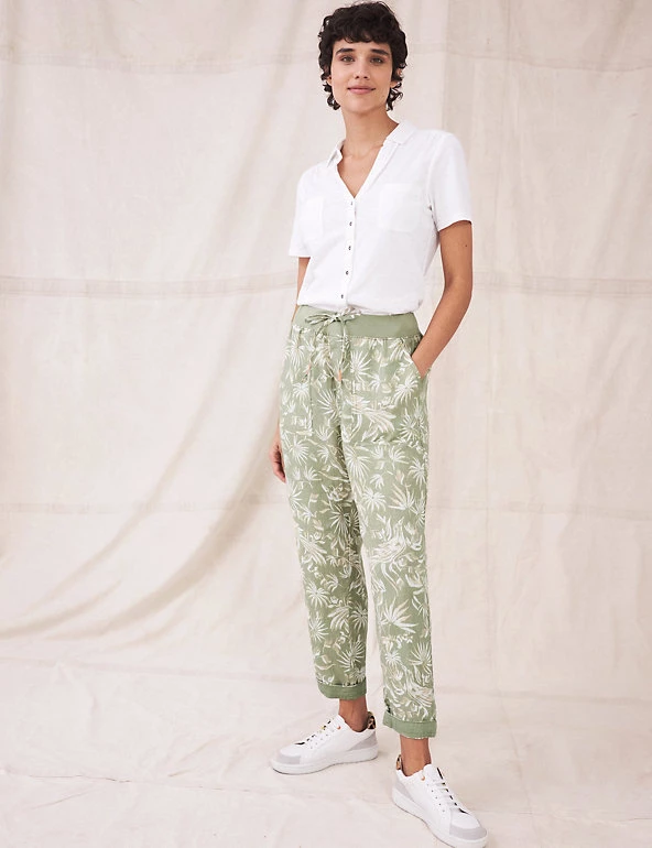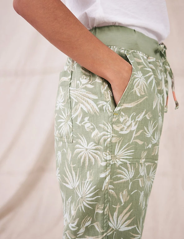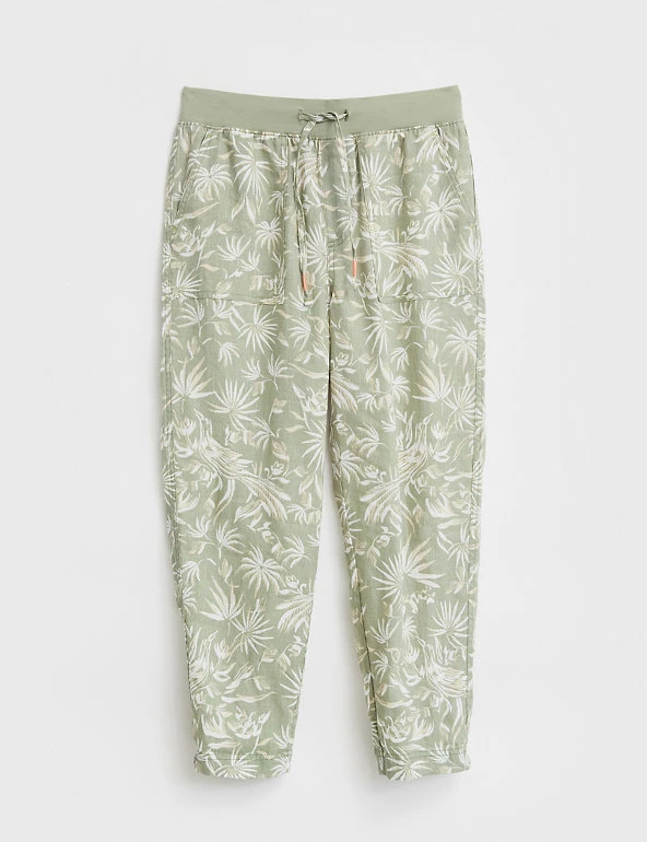 Feel effortlessly cool and stylish on warmer days, in these pure linen trousers from White Stuff. Their slim-fit shape ensures an on-trend outline, and a mid-rise elasticated waist gives effortless comfort. An all-over print of birds and tropical leaves creates a dreamy, summery air. A tie fastening at the waistband, and turn-up cuffs at the hems, add neat extra detail.