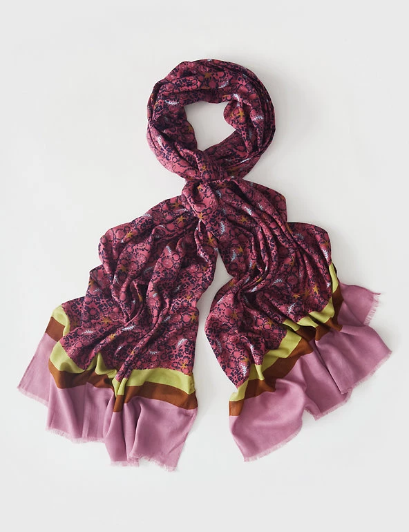 Introduce a splash of colour into ensembles with this stylish scarf from White Stuff. It features a statement floral design with colour-block stripes at the hem and is finished with fringed trims.