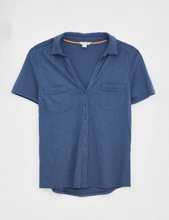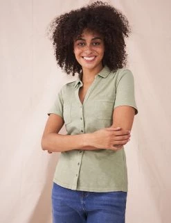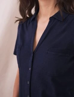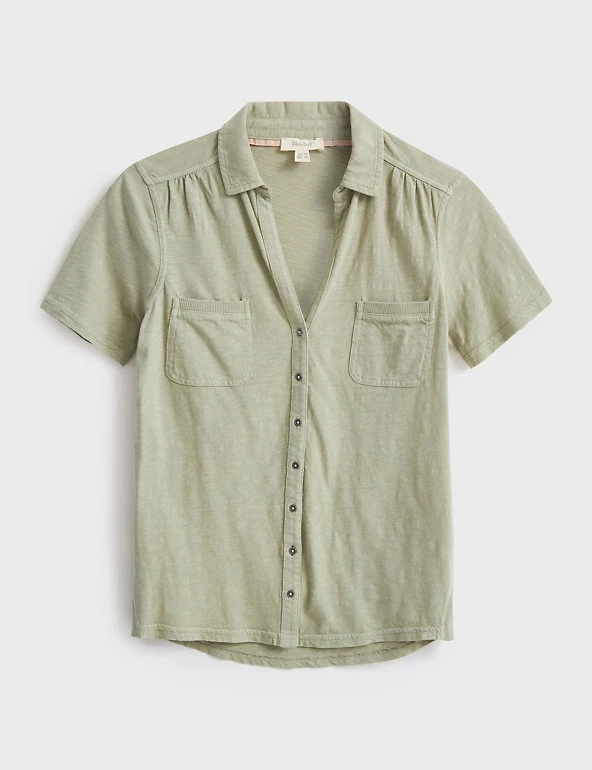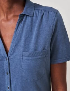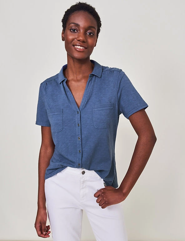 This dress-up, dress-down cotton jersey shirt from White Stuff will make a versatile addition to any wardrobe. It’s cut to a comfortable regular fit, with a deep v-neck that dips to a button front. Two chest pockets complete the piece.