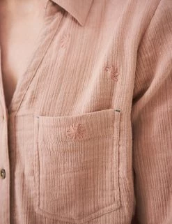 Embroidered daisy motifs lend a dainty feel to this flowing pure cotton shirt from White Stuff. It comes in a regular fit, with long sleeves and contrasting buttons down the front. A low curved hem at the back gives extra coverage. The open collar neckline and front patch pocket create a smart-casual look.