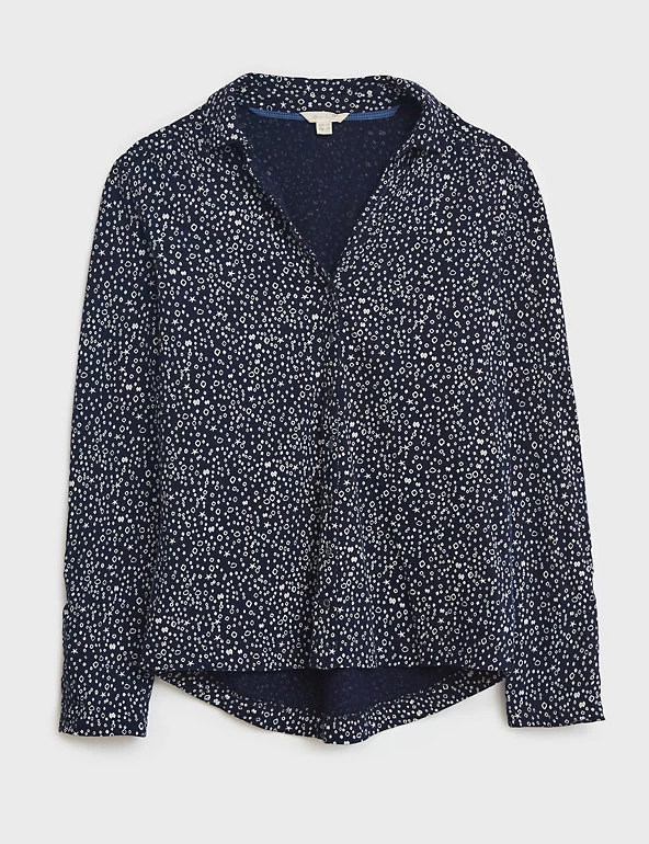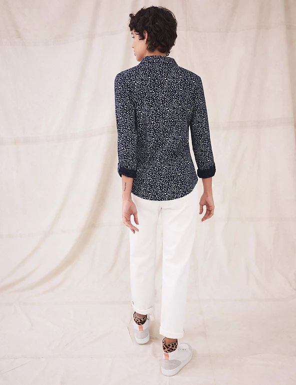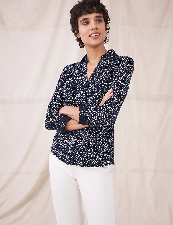 This White Stuff shirt will give your casual looks a unique edge, thanks to its abstract print. The regular fit style is made from pure cotton jersey fabric for a soft feel. It has flattering gathers on the shoulders and long sleeves with buttoned tabs for a neat finish.