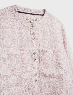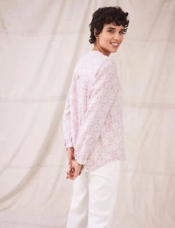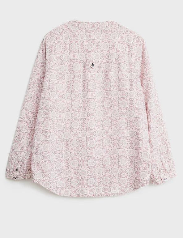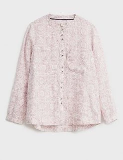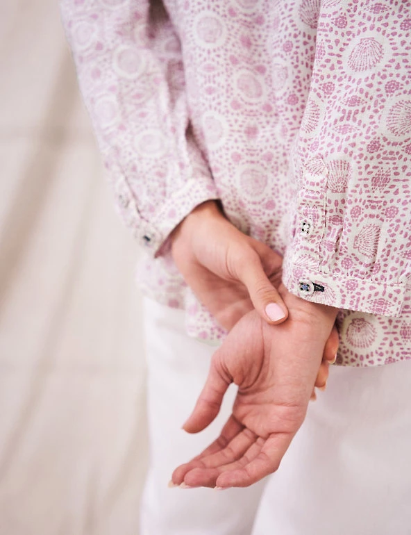 This pure linen shirt from White Stuff is printed with an intricate graphic shell motif. It’s cut in a comfortable regular fit, with button-through fastenings and an easy collarless neckline. Patch pockets on the chest add a touch of utility cool. The hemline is slightly dropped at the back for a casual air, and the long sleeves are finished with narrow buttoned cuffs.