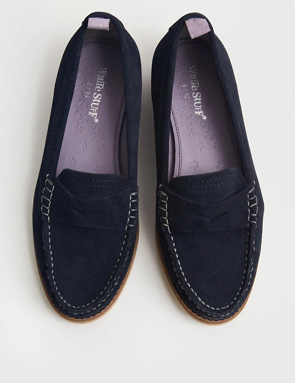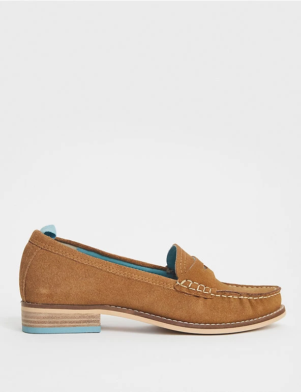 Treat your feet to these classic suede loafers from White Stuff. These slip-on shoes are designed in a classic regular fit with a comfy block heel. Contrast stitching around the front adds authentic detailing.