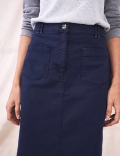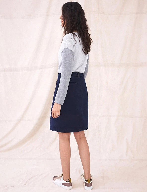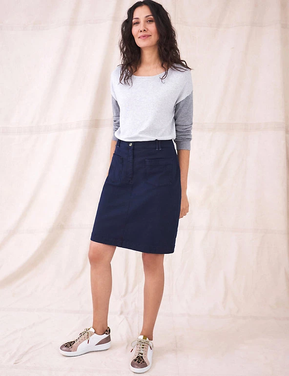 Casual style meets comfort with this organic cotton-rich skirt from White Stuff. The classic A-line style falls to a versatile knee length. A touch of stretch ensures you can move freely. It’s complete with utility-style patch pockets at the front.