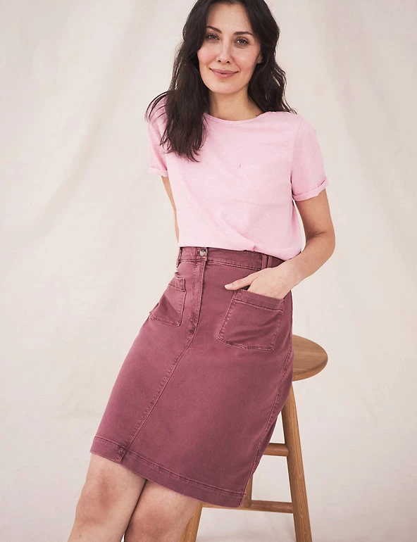 With its sleek A-line cut and classic details, this organic cotton skirt by White Stuff is all about pared-back chic. Cut to a regular fit, this knee-length piece features a simple button closure, front patch pockets and welted back pockets for vintage-inspired appeal. Made with organic cotton.