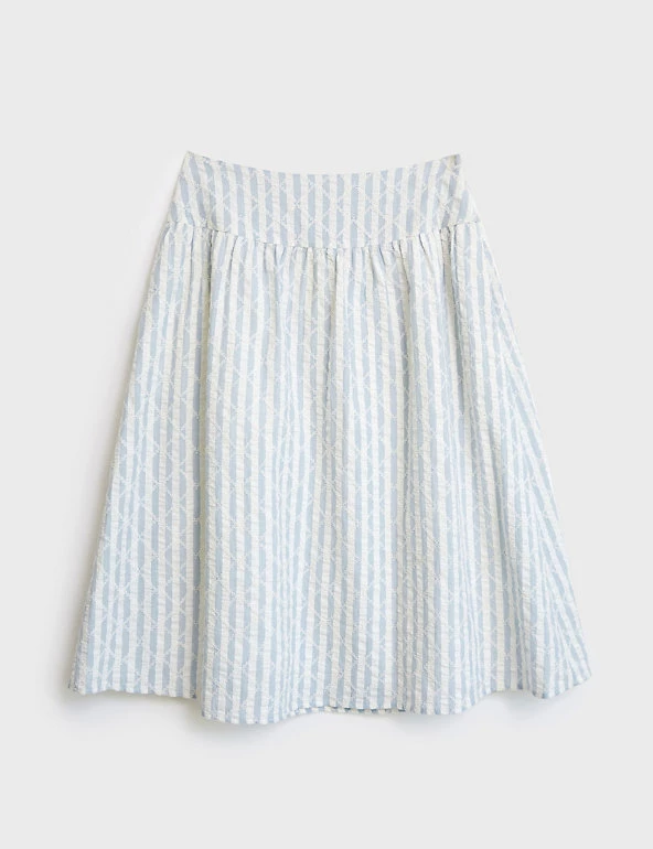 This pure organic cotton skirt from White Stuff is printed with stripes and embroidered with a quilted floral design, for a gorgeously summery feel. It’s cut in an easy A-line shape, with an on-trend midi hemline. A full lining ensures extra comfort, and the skirt fastens with a side zip for a neat look. Made with organic cotton.