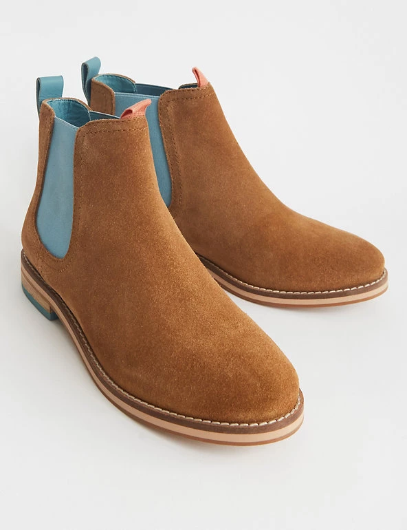 Add some subtle colour contrasts to your winter wardrobe with these suede Chelsea boots from White Stuff. They’re designed in a classic regular fit with a comfy flat heel and feature contrasting elasticated inserts for a touch of colour and a flexible feel. These statement shoes feature colour-pop pull tabs for easy on-off and signature metal hardware at the back.