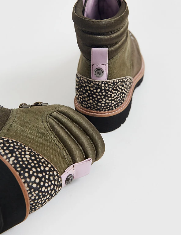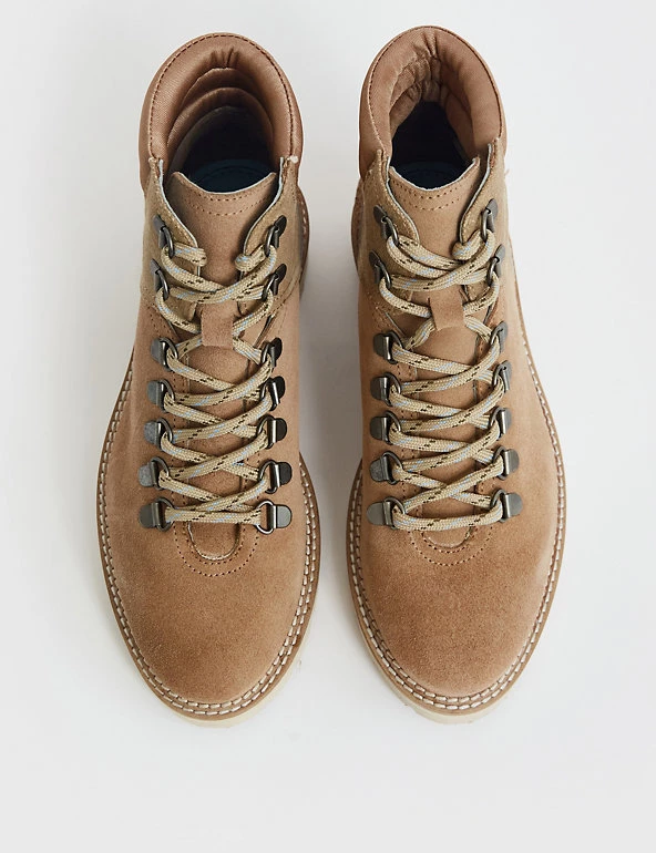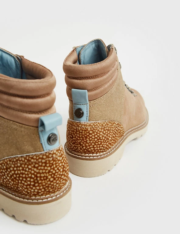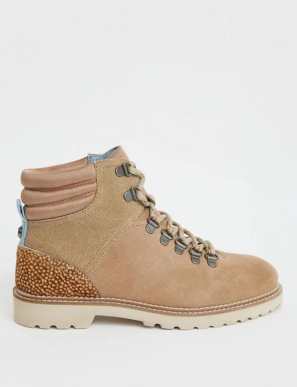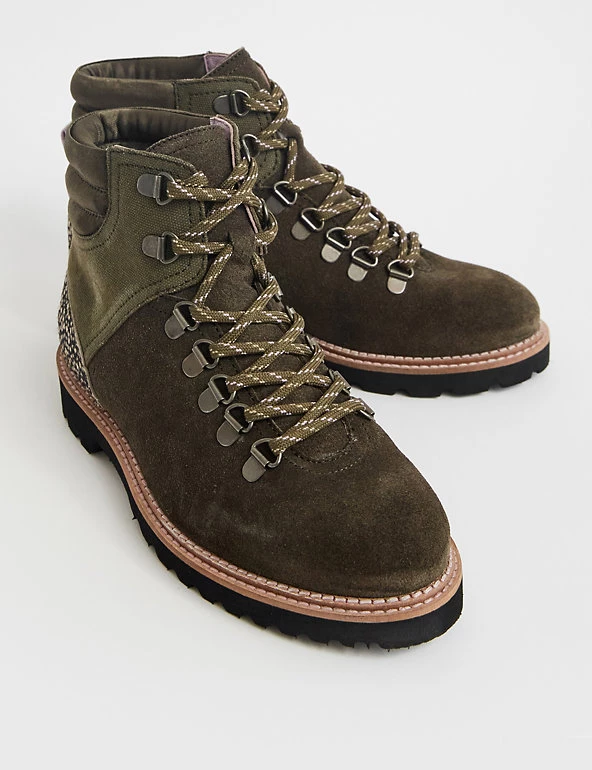 These suede hiker boots from White Stuff are the perfect blend of style and practicality. They have lace-up fastenings with eyelets for a super-adjustable fit. Designed for comfort, they feature padding at the back of the ankle and a flat heel and sole with plenty of grip. A mixed panel design adds a modern touch to these versatile boots, which are finished with a contrast pull tab and branded metal hardware at the back.