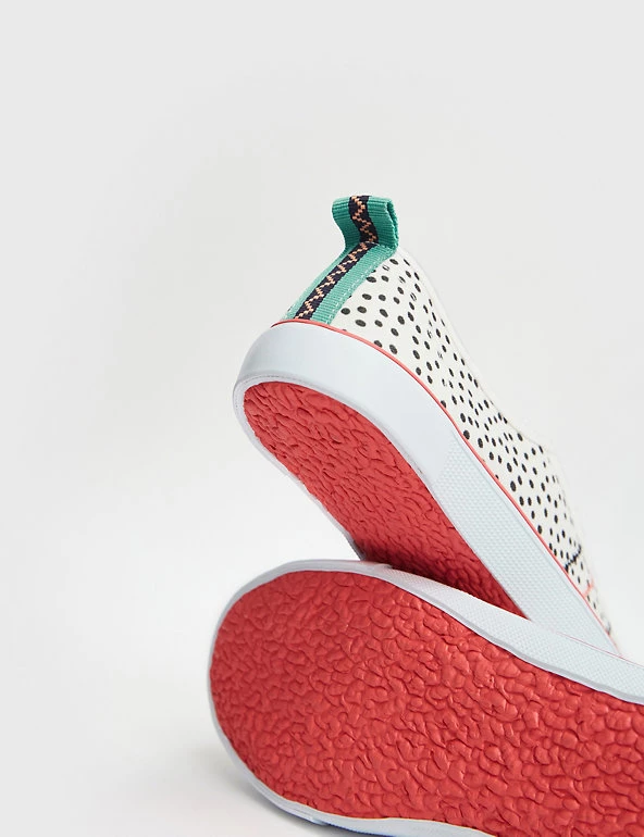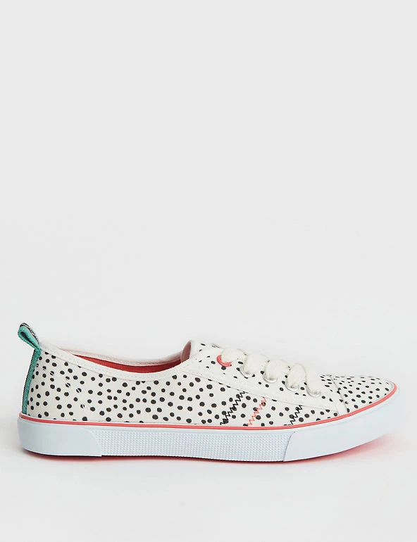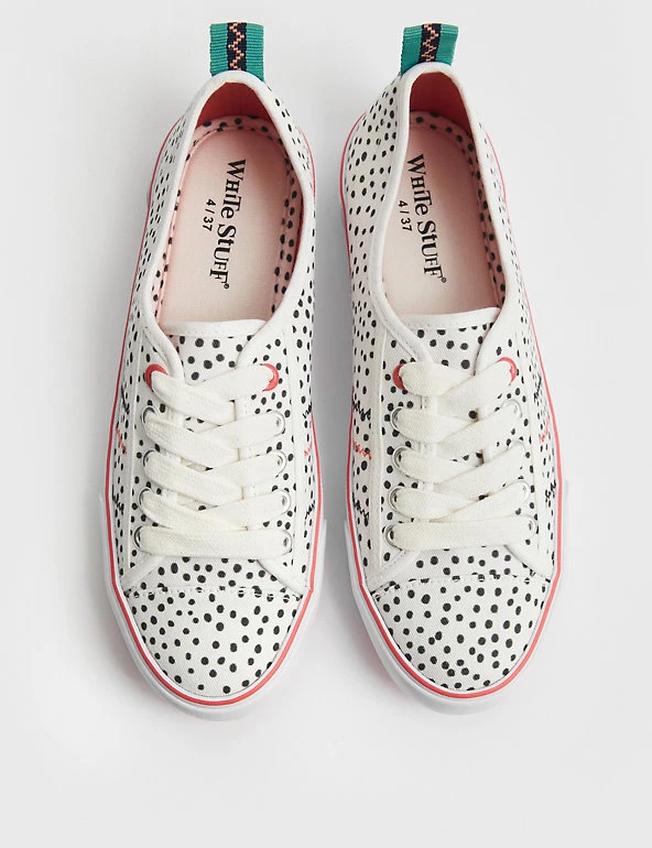 Elevate your casual looks with these pure cotton pumps from White Stuff. These effortless slip-ons are designed with decorative laces and a flat heel. The upper features a playful spot print and zig-zag stitching, while contrast detailing adds an extra pop of colour.