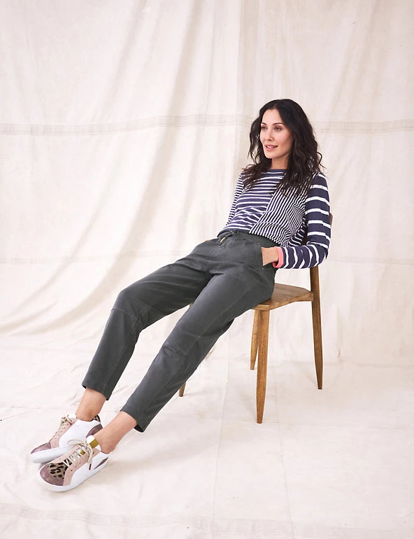 Take your loungewear to the next level with these pure cotton jersey joggers from White Stuff. They’re made in a flattering slim fit, with a drawstring tie at the mid-rise waistband for an easy, comfortable wear. Topstitched patch pockets and seams give a finishing touch of utility cool.