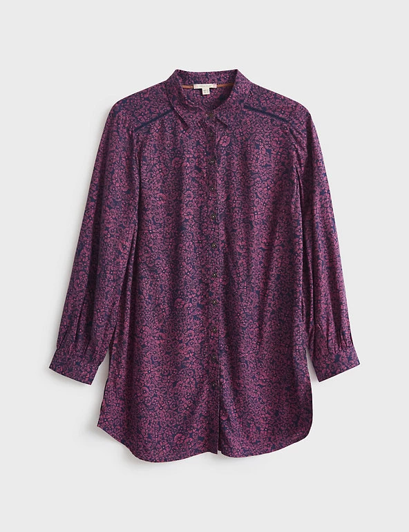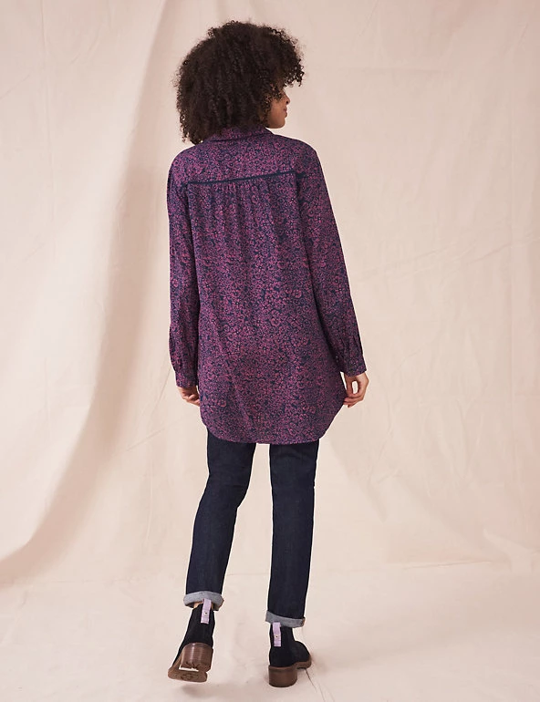 Refresh smart-casual looks with this flattering floral-print tunic from White Stuff. It’s cut in a comfy regular fit with a button-through closure and a smart collared neck. This versatile long-sleeved piece is finished with refined buttoned cuffs. Made with sustainably sourced viscose.