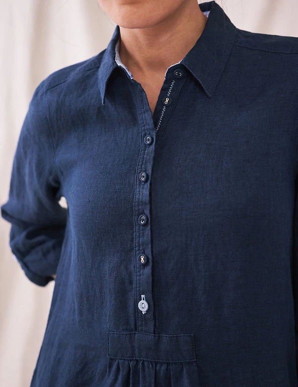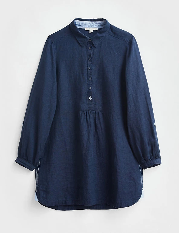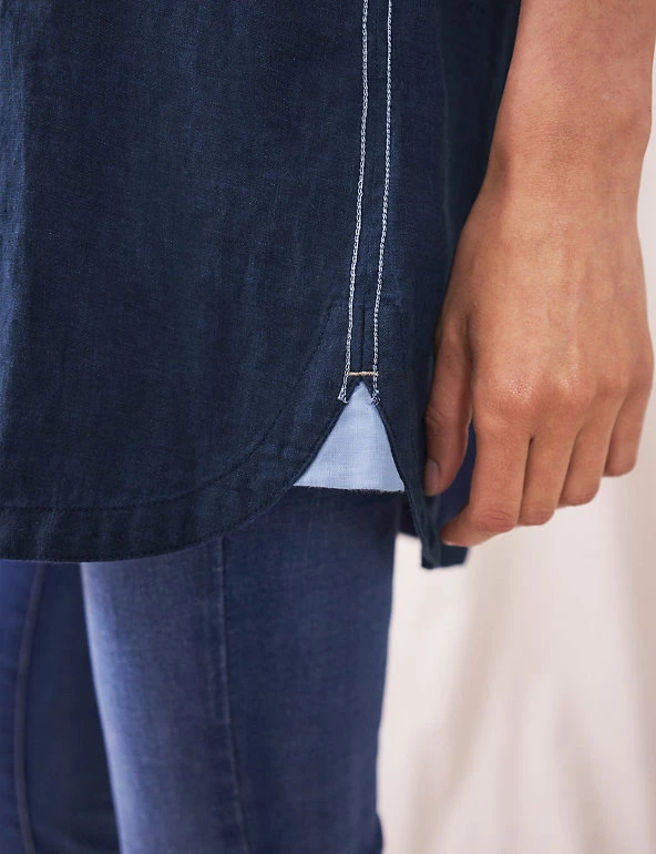 Crafted from pure linen, this White Stuff tunic is a dream for casual dressing in balmy weather. It’s cut to a regular fit, with flattering three-quarter length sleeves. A button-front placket meets a smart collared neck, plus there’s neat a button and tab on the sleeves. Contrast stitch detailing on the sides adds a stylish twist.