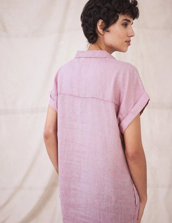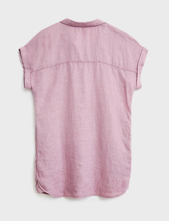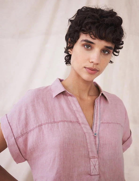 This stylish tunic by White Stuff is crafted from pure linen for a lightweight and breathable feel. A smart collar gives the regular-fit piece a contemporary update, together with a flattering v-neck placket. It’s finished with turn-back cuffs on the short sleeves and subtle contrast stitching on the front and back.