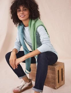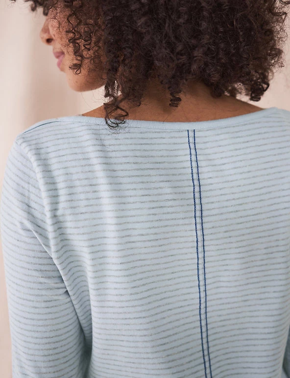 A subtle striped pattern gives this cotton-rich White Stuff t-shirt laid-back appeal. The classic design features a crew neck and is cut to a comfortable regular fit, great for everyday wear. It has flattering long sleeves for a casual feel, and is finished with a contrast stripe down the back.