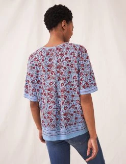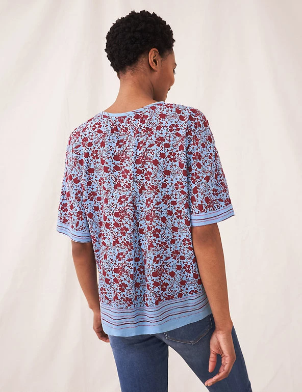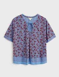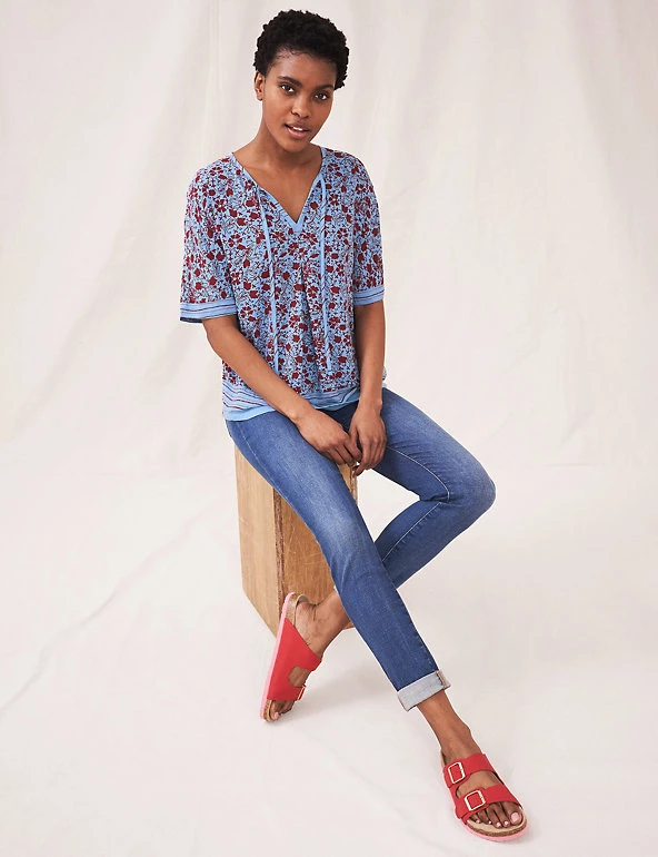 With its crinkle texture and all-over floral print, this White Stuff top brings a fresh and summery feel to any outfit. It’s cut in an easy regular fit, with short sleeves that are ideal for warmer weather. A keyhole tie fastening lends extra interest to the crew neckline, and embroidered trims at the cuffs and hemline add pretty detail.