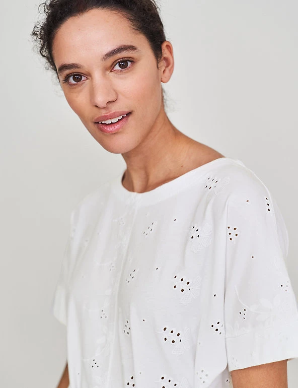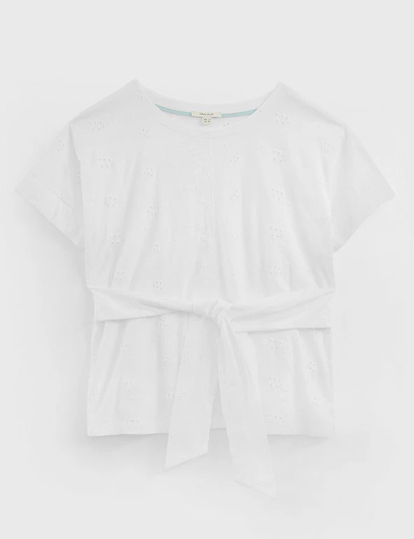 For a stand-out casual top, opt for this pure cotton t-shirt from White Stuff. Cut in a regular fit with a round neck, it has a flattering oversized front tie that draws the eye and gently nips in the waist. Delicate broderie anglaise creates the ultimate feminine look.