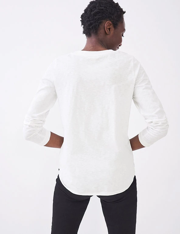Elevate your essentials collection with this staple top from White Stuff. It’s designed in a comfy regular fit and features a simple crew neckline and cosy long sleeves. The pure cotton piece has a flattering curved hemline and pretty stitching detail on the side.