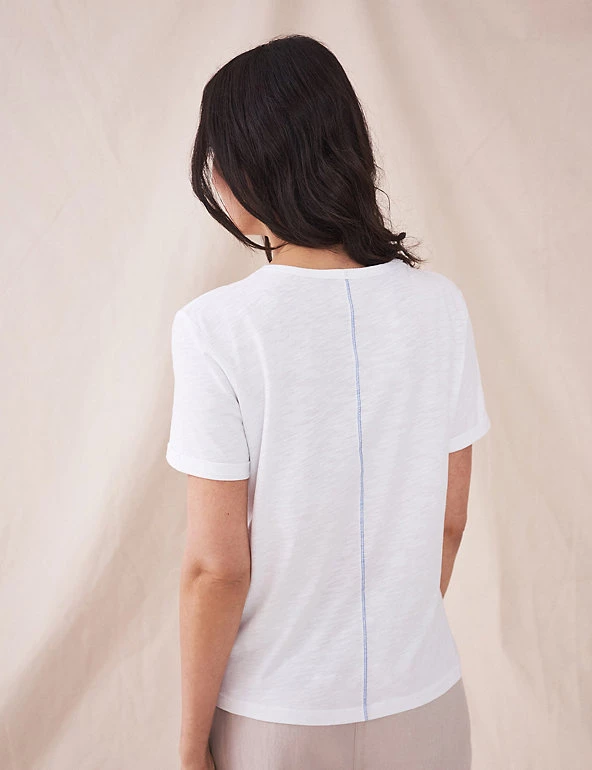 Subtle touches give this pure cotton t-shirt by White Stuff unique appeal. It’s cut to a comfortable regular fit, with turned-back short sleeves and a classic crew neck. It’s finished with contrast stitch detailing on the back, hem and patch pocket for a pop of colour.