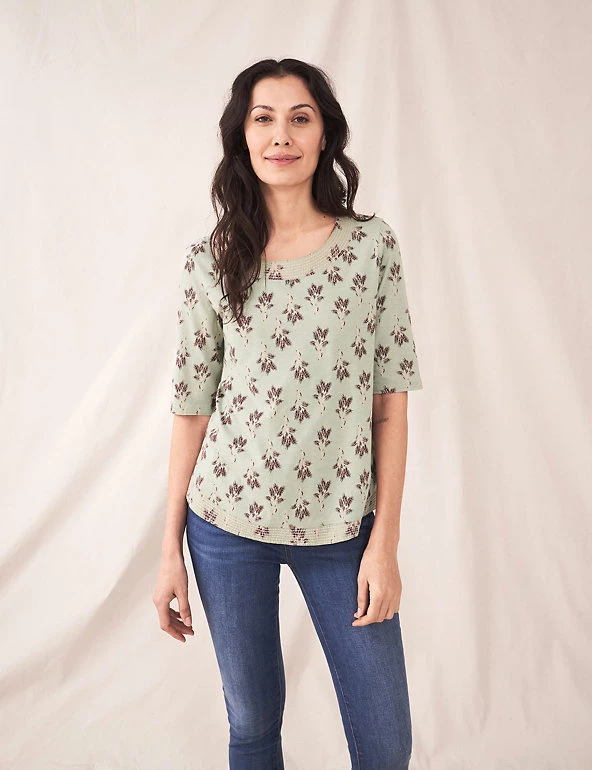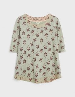 Made with pure cotton, this floral t-shirt from White Stuff is a casual, comfortable classic. It has a regular fit, with an easy round neckline and three-quarter length sleeves. Exposed stitch detail around the neckline completes the look.