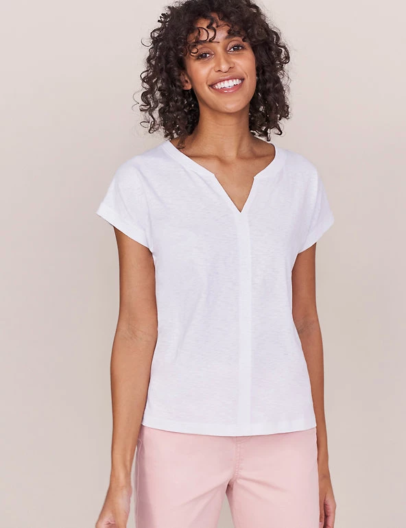 Upgrade your comfy essentials with this pure-cotton lightweight t-shirt from White Stuff. It comes in an easy regular fit, with a notch neckline and grown-on short sleeves for a breezy feel.