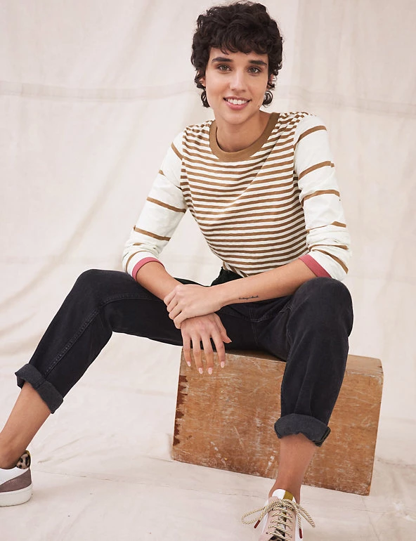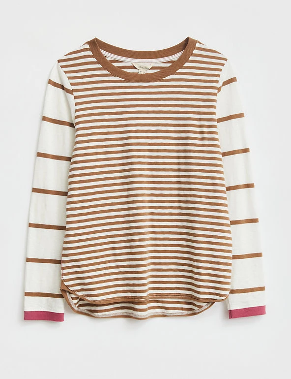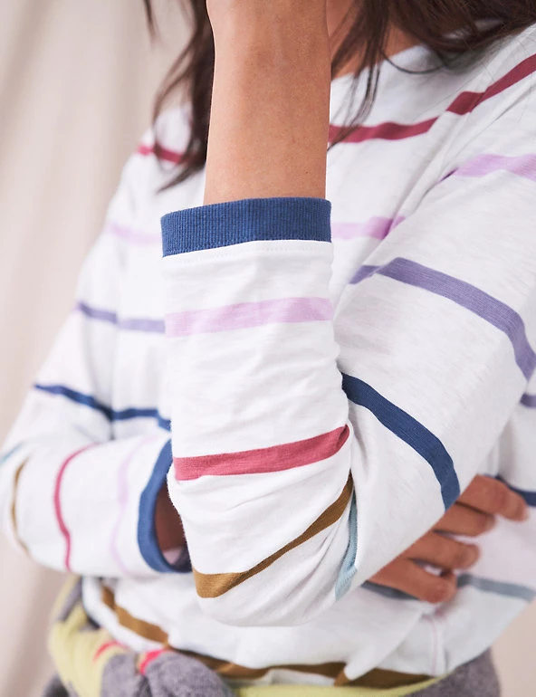 Striking stripes give a distinctive look to this pure cotton top from White Stuff. It’s cut to an easy casual fit and features a classic rounded neckline, plus contrast cuffs on the long sleeves.
