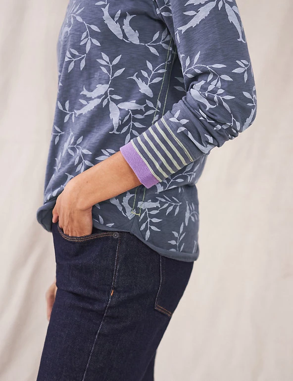 This pure cotton top from White Stuff puts a new spin on classic stripes. Cut in a regular fit for comfort, this long sleeve style has a smart round neck and snug ribbed cuffs. It’s complete with a modern mixed stripe pattern and contrast coloured trims.