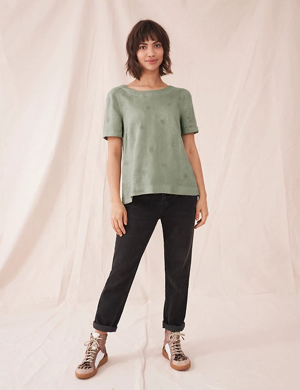 Enjoy the light and breezy feel of this pure-linen top by White Stuff. It’s cut to a comfy regular fit, with short sleeves and a crew neckline. Elevated details include the botanical embroidery and button placket at the back.