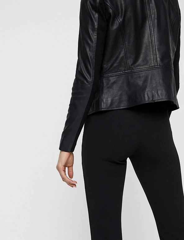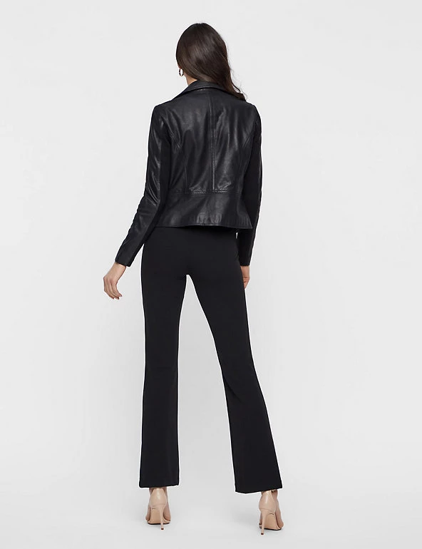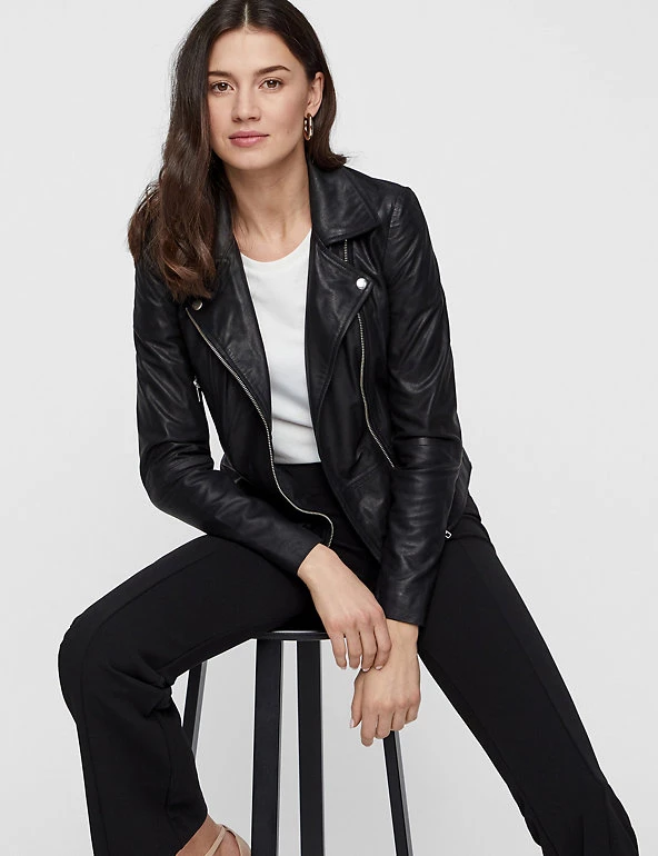 Add a bit of rock-chic to any outfit with this premium biker jacket from Y.A.S. This design features a flattering fitted shape, with a simple zip fastening and fabric side panel detail. A classic collared neckline and a practical zipped pocket finish off the look.