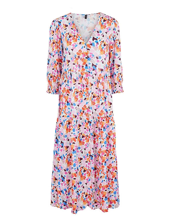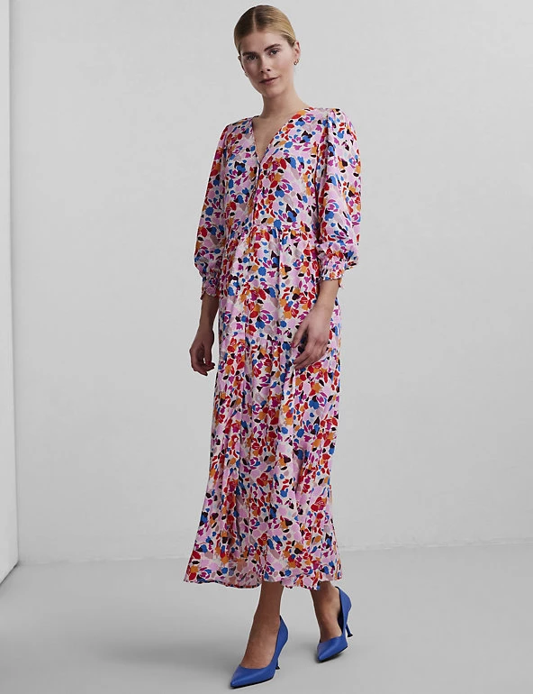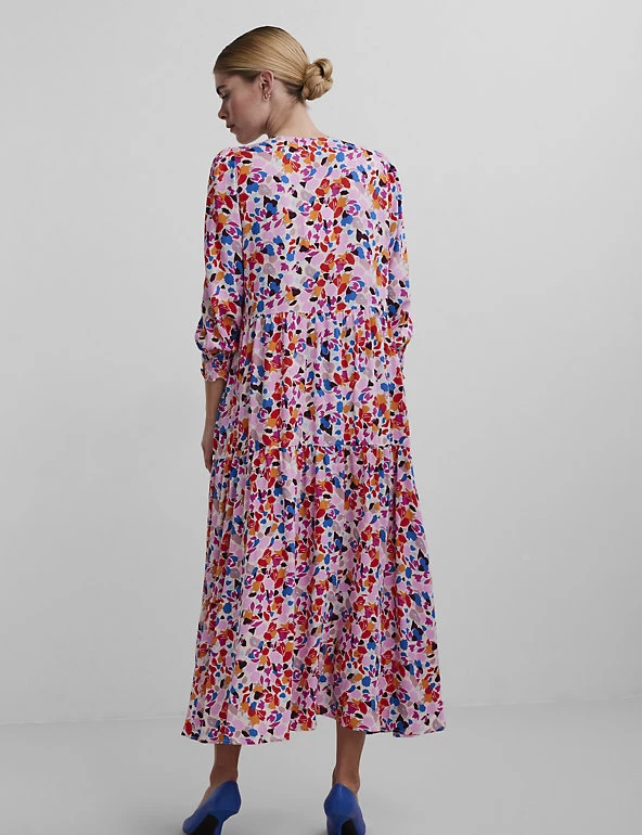 Refresh your spring wardrobe with this floral shirt dress from Y.A.S. It’s designed in a comfy regular fit with a feminine v-neckline. The bodice is buttoned to the waist and then flows out to a tiered midaxi skirt. This versatile style features flattering 3/4 sleeves with stretchy cuffs. Made with sustainably sourced viscose.
