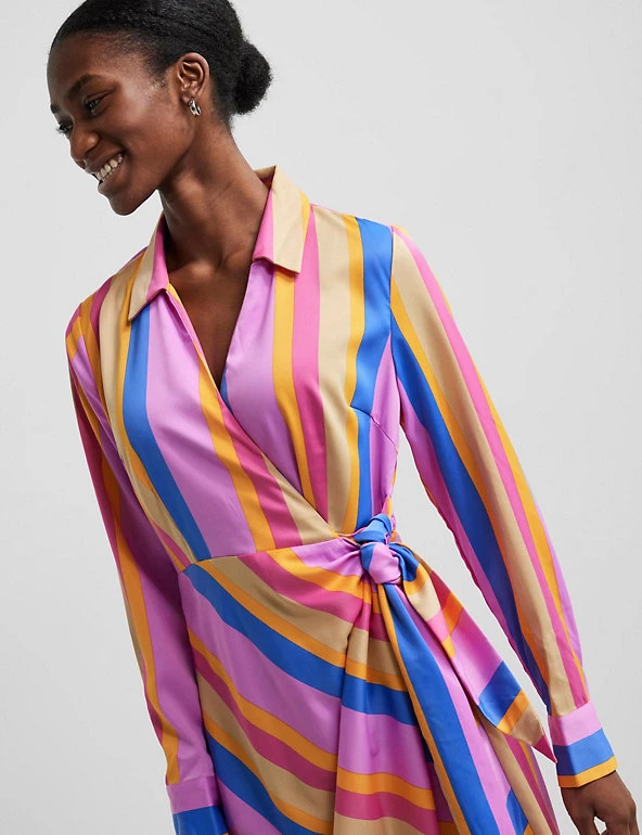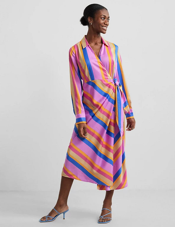 Make space among your stripes for this stand-out midi dress from Y.A.S. Designed in a regular fit, the wrap silhouette is ultra-flattering and will take you from day to night with ease. Made with recycled polyester.