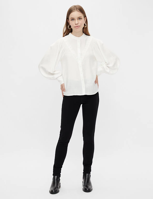 Floral embroidery gives this Y.A.S shirt a romantic edge. It’s designed in a comfy regular fit with a neat round neck and a classic button-through closure. Ruching appears at the shoulders for an ultra-feminine finish. Made with sustainably sourced viscose.